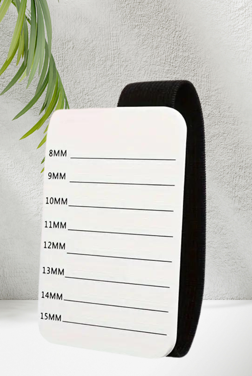The Lash Holder Eyelash Extension Hand Pallet is equipped with an adjustable wrist strap and strip palette to fit most eyelash extensions. It also includes a blossom board for lash grafting and a hand-held display board for easy viewing.