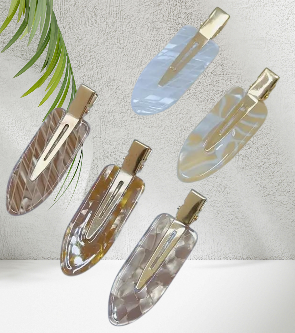 Marble Traceless Hair Clips 5 Piece. Elevate your look with these stylish and versatile accessories that securely hold your hair in place while adding a touch of elegance. Perfect for casual days or special occasions, these duckbill clips are a must-have for every fashion-forward woman.