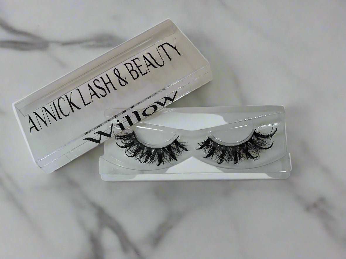 Enhance your beauty with Willow Fluffy Thick 3D strip lash. These lashes provide a natural, curled look in three different lengths: 12mm, 18mm, and 18mm. Each order includes a complimentary lash case and spoolie for convenient storage and upkeep. Experience the best in natural-looking false lashes.